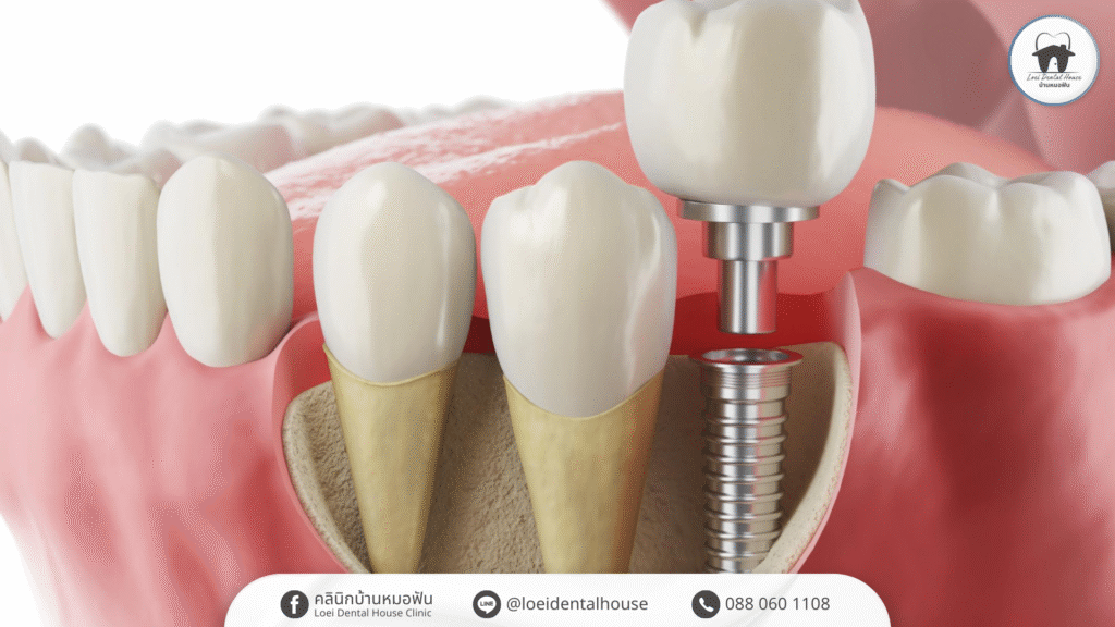 คือ วิกฤตการแพทย์ที่ออกแบบมาเพื่อทดแทน “รากฟัน” ที่สูญเสียไป โดยใช้วัสดุไทเทเนียม (Titanium) ซึ่งมีคุณสมบัติเข้ากันได้ทางชีวภาพ (Biocompatibility)
